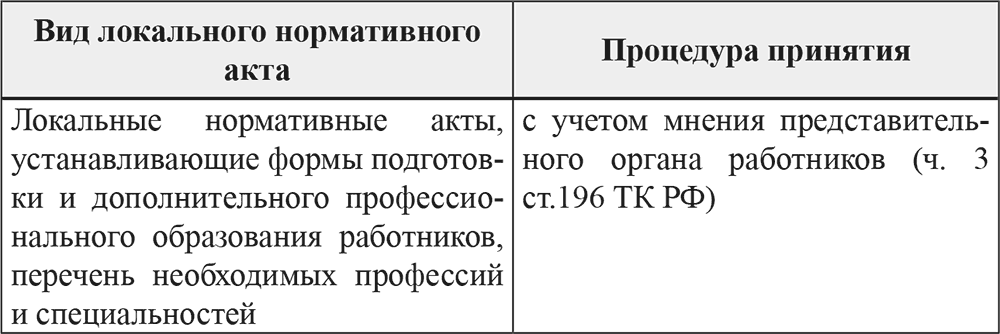 Необходимо иметь в виду, что ТК РФ в некоторых случаях устанавливает процедуру принятия локального нормативного акта:
