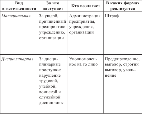 В трудовом законодательстве за совершение дисциплинарного проступка предписаны такие виды дисциплинарного взыскания как: замечание, выговор, строгий выговор, перевод на нижеоплачиваемую работу на срок до трех месяцев или смещение на низшую должность на тот же срок, увольнение. Привлекает к дисциплинарной ответственности вышестоящий орган или руководитель.